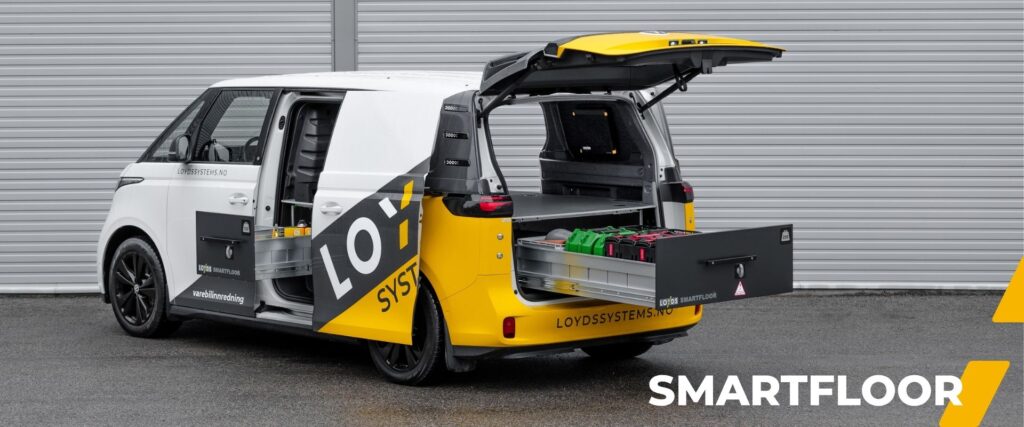 Smartfloor Transporter 6 (kort) – anpassad bil med värmefläkt i lastrummet